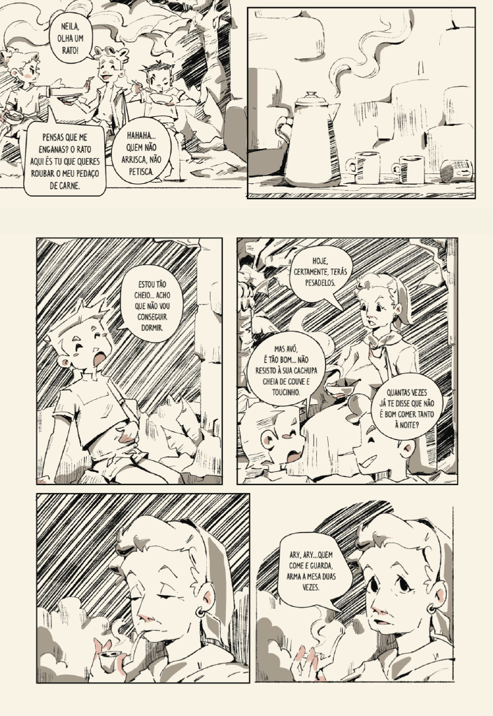 Dans un village tranquille de Santo Antão, Grand-mère Leleta gère courageusement et avec résilience les terres familiales, élevant enfants et petits-enfants avec un amour ferme et une détermination sans faille. Les difficultés traversées à Praia Formosa—où beaucoup ont souffert de la faim après le naufrage d’un bateau chargé de maïs—l’ont façonnée en une femme forte et déterminée. Avec humour, elle enseigne à ses petits-enfants que la peur peut devenir notre pire ennemie, un obstacle qu’il faut affronter pour avancer. Mais nous n’avons pas toujours à le faire seuls : la famille est union et soutien lorsque nous nous trouvons dans l’obscurité.